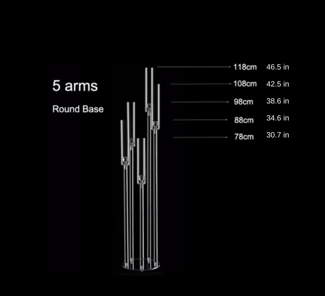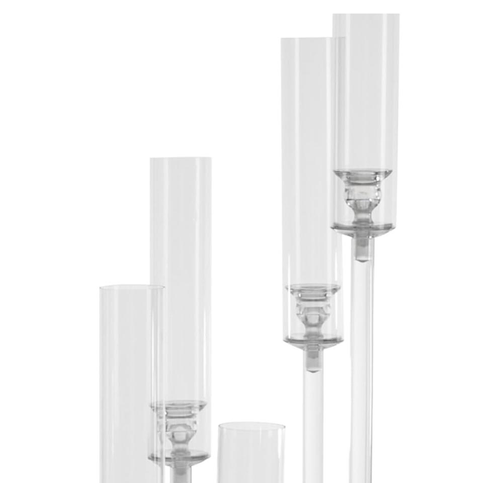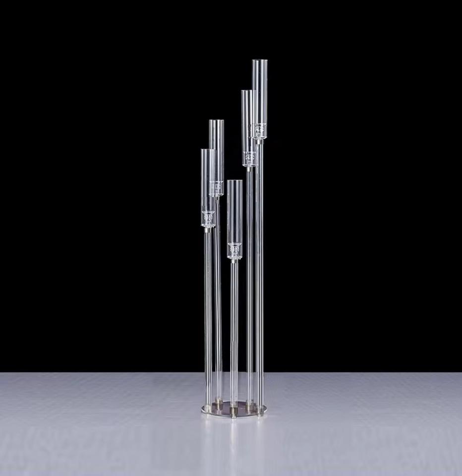 Add a sleek and modern glow to your event design with this clear acrylic candle holder. Designed with multiple vertical stems at varying heights, this statement piece creates visual interest while allowing candlelight to reflect beautifully through the transparent acrylic. Its clean, minimalist look blends seamlessly into any décor style without overpowering surrounding elements.