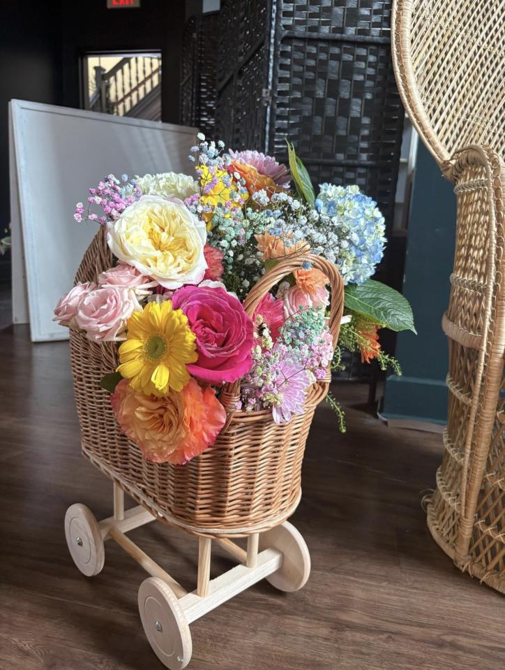 Use it to hold flowers, favor bags, gift cards, small plush toys, or simply as a stunning statement prop in your event photos. Its vintage style and natural wood wheels create the perfect backdrop for creating unforgettable moments.