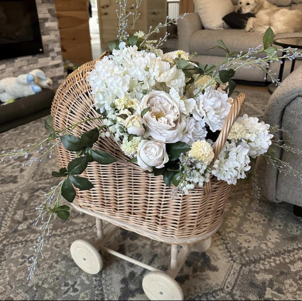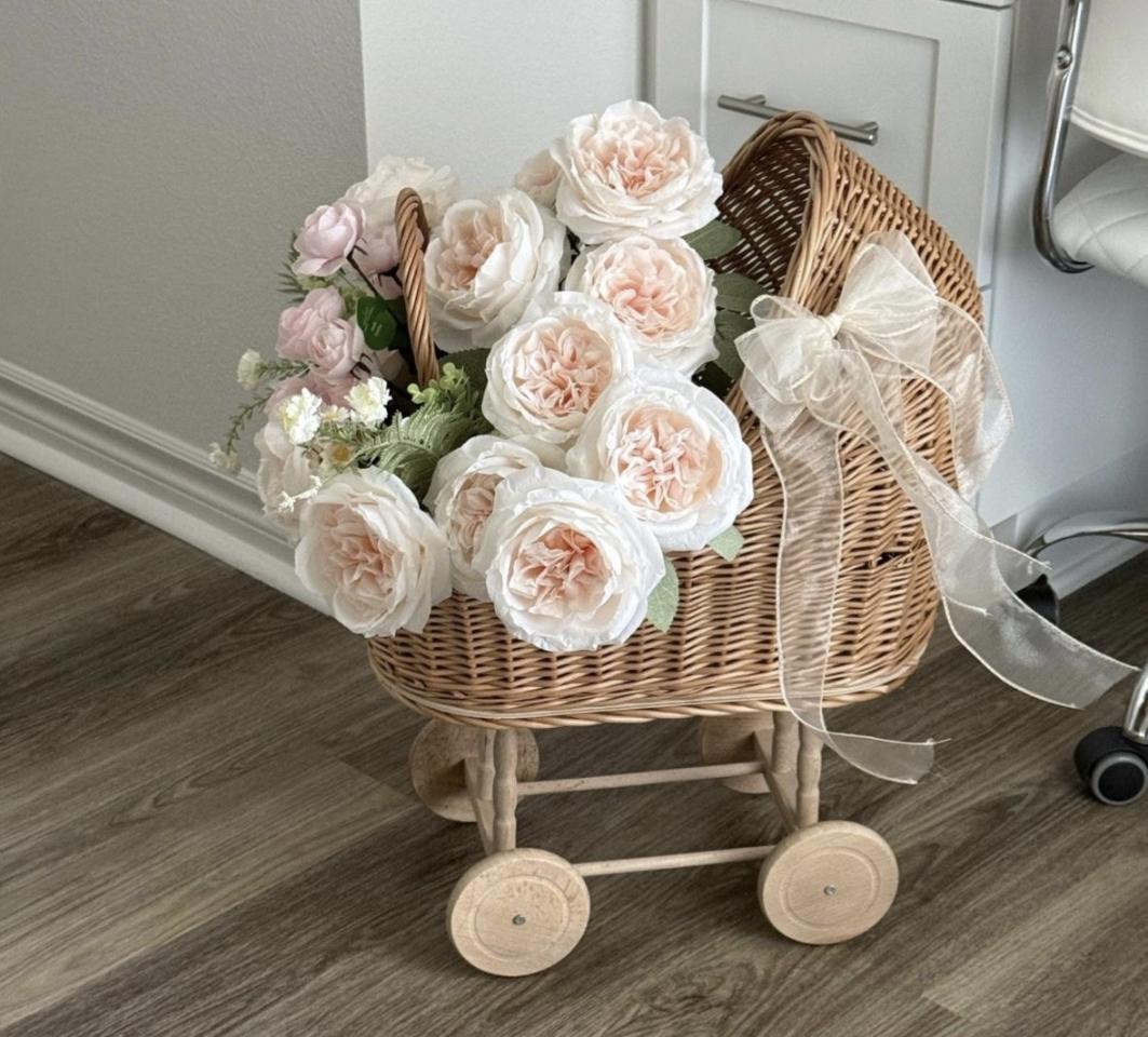 Add an elegant touch to any celebration with this Natural Wicker Baby Carriage. This charming accent piece is perfect for baby showers, gender reveal parties, maternity photo shoots, first birthdays, and event decor displays. The hand woven wicker design brings a warm and timeless feel that works beautifully with soft neutral themes and luxury floral arrangements.